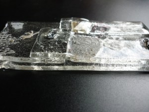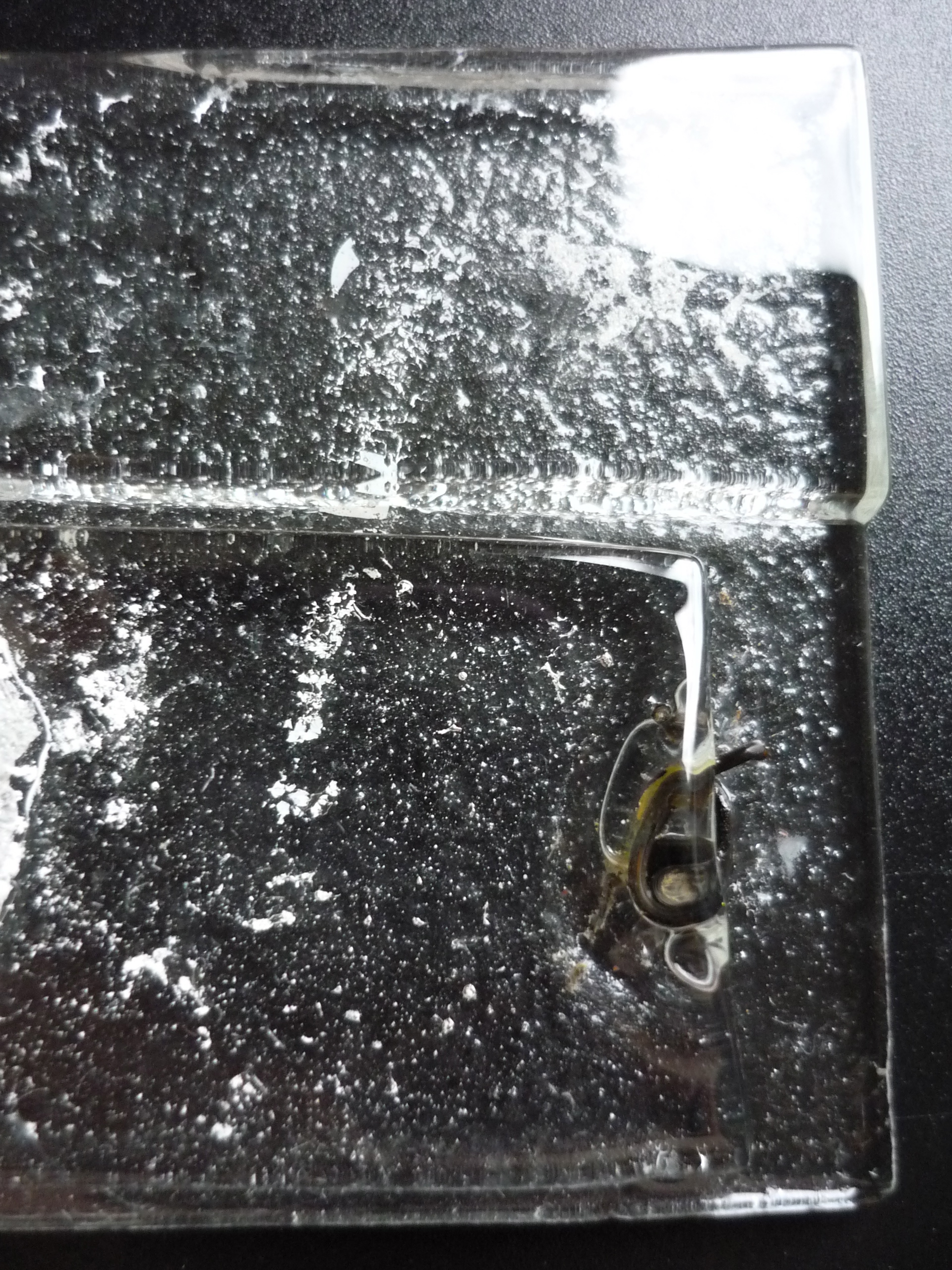 The mirror’s shape remaining in the glass, but it doesn’t look like mirror.
