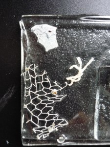 Leaf and gauze became to white. Leaf became to small and veins of the leaf were burnt in the glass.