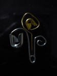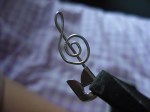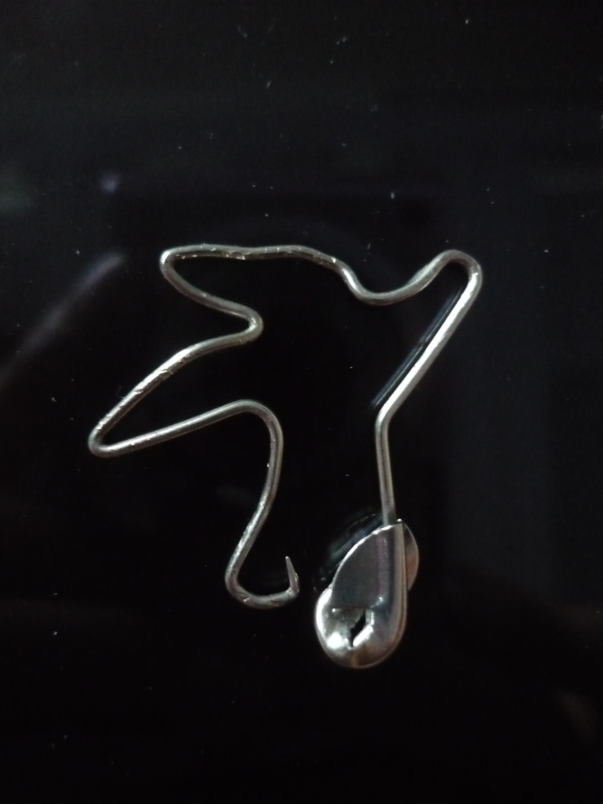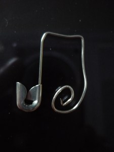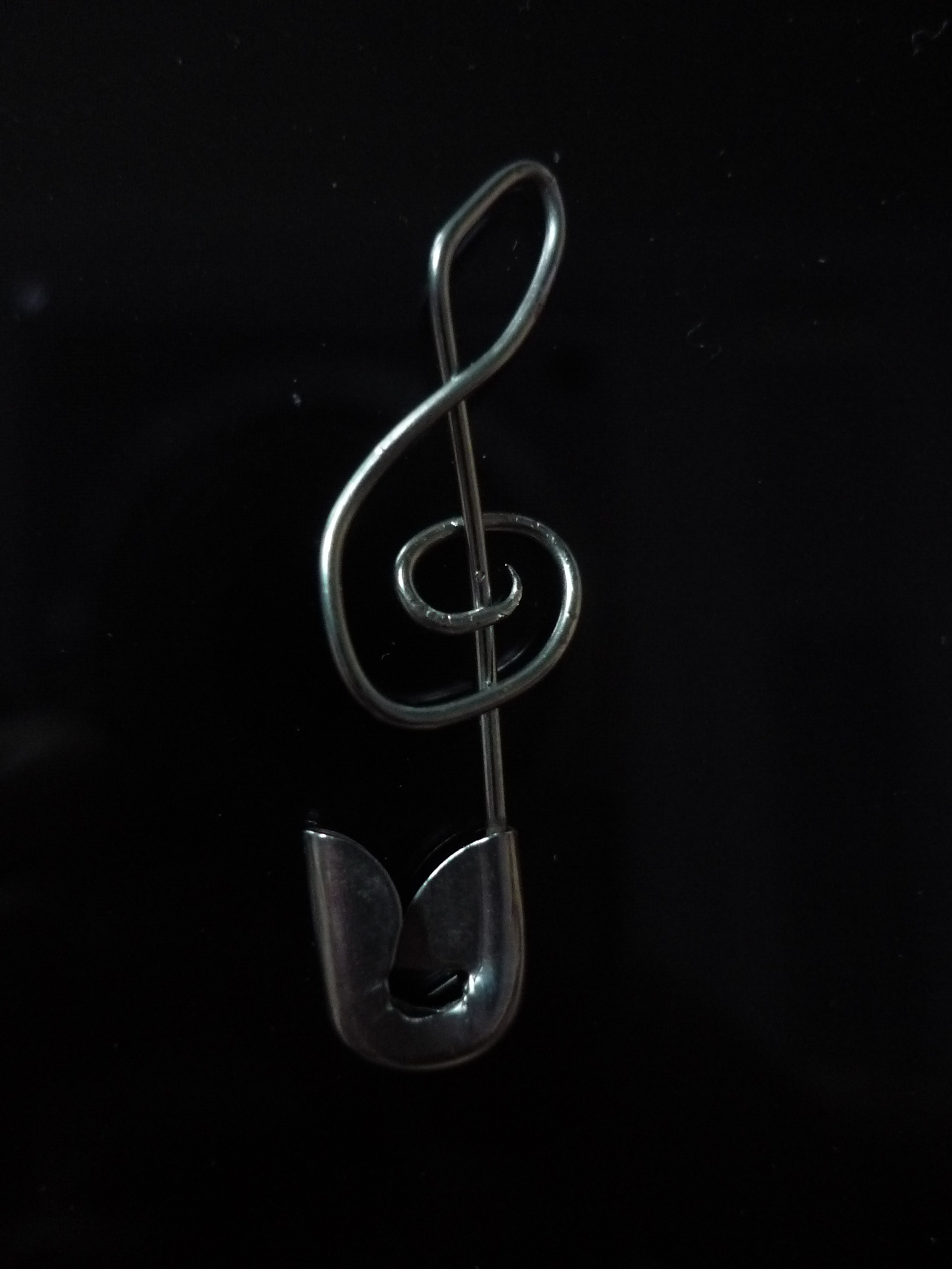 Treble clef, flying dove (logo mark of my school), eighth notes, and flower. A flower using 2 types of safety pin.