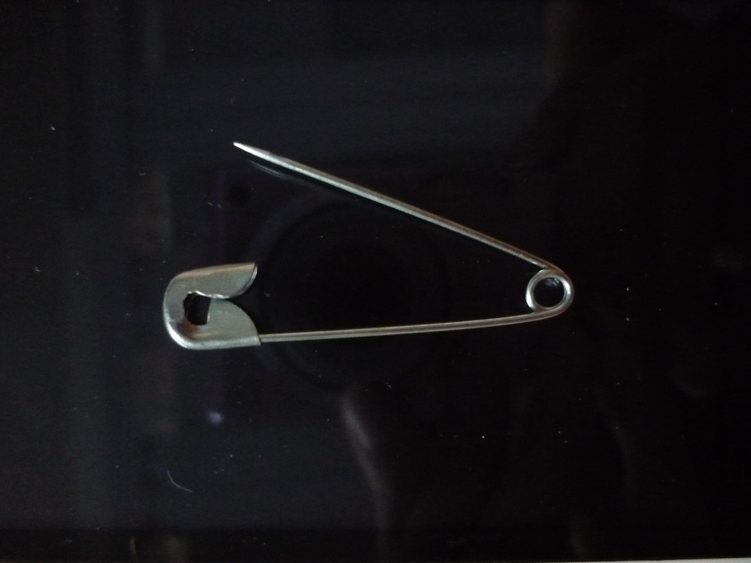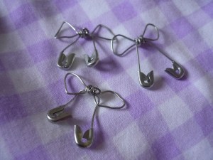 My favourite work is ribbon. I used 2 safety pins (same type) to make one ribbon. This was very hard because I needed to hold the both pins by a thumb and forefinger, then roll the end part of wire on the crossing part of pins. So my fingers hurting through transforming the safety pins.