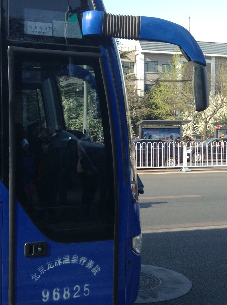 I found the mirror of the bus very interesting (my friend thought too). Those mirrors like the antennae (feelers) on an insect. This is one of differences between the bus in China and Australia.