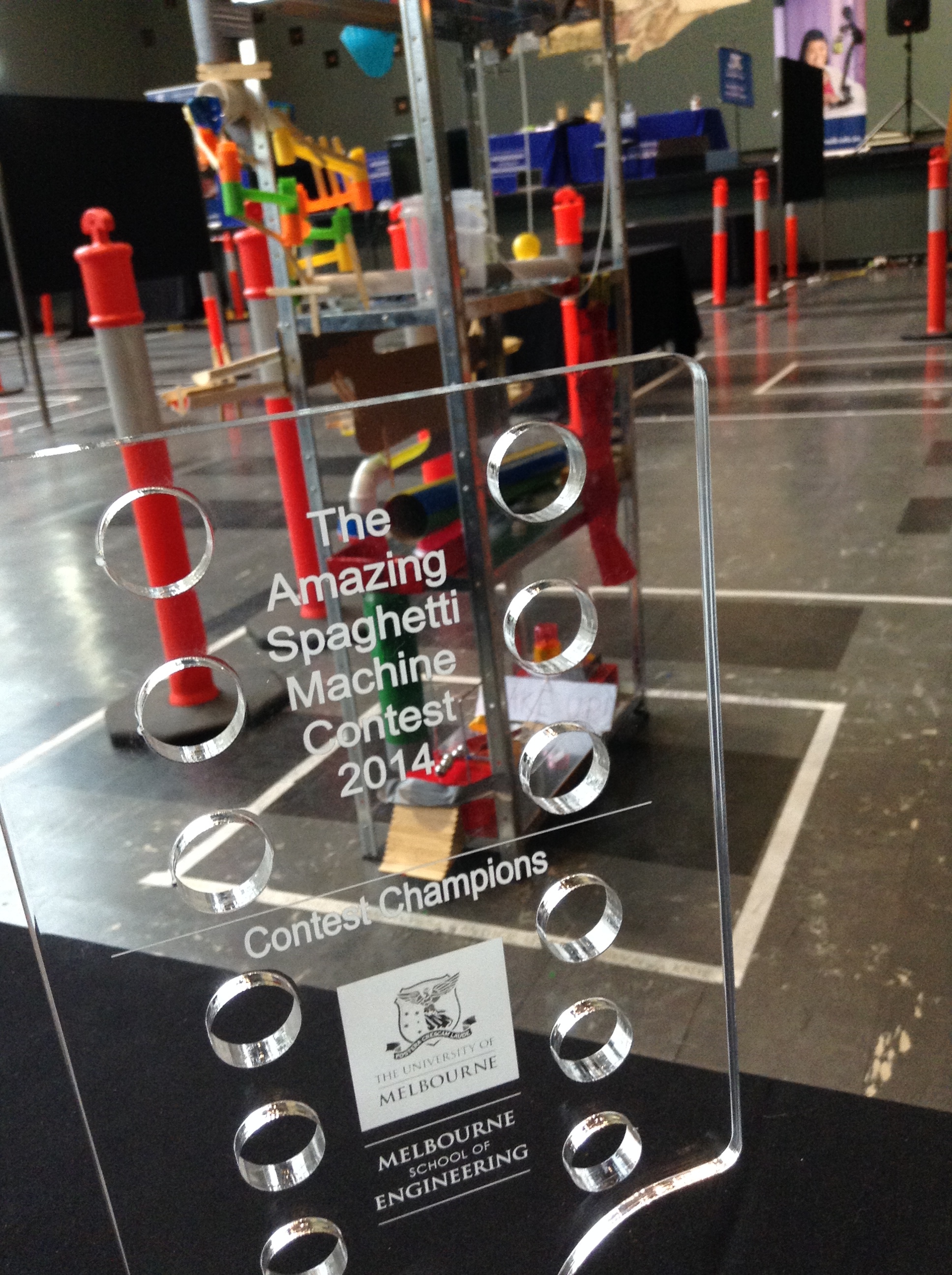 IMG_3648 June 2, 2014 Return to: The Amazing Spaghetti Machine Contest @ University of MelbourneFull resolution (1936 × 2592) Image navigation Previous Image We came 1st (tie)!! Share this!!TweetMoreShare on Tumblr Click to print (Opens in new window) Print Click to email a link to a friend (Opens in new window) Email Like Loading...