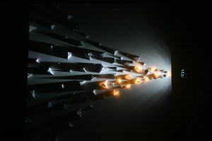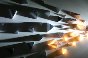 As this competition was about Street art, I took the inspiration from the street at night, with the shining stars on the sky and shadows of objects created by cold street light. The use of two LED lights with white / yellow colour distinguished the sense of nature and the synthetic beauty. The gradual change of the intensity of triangular pyramids from right hand side to left hand side represents the broad expansion of the modern city.