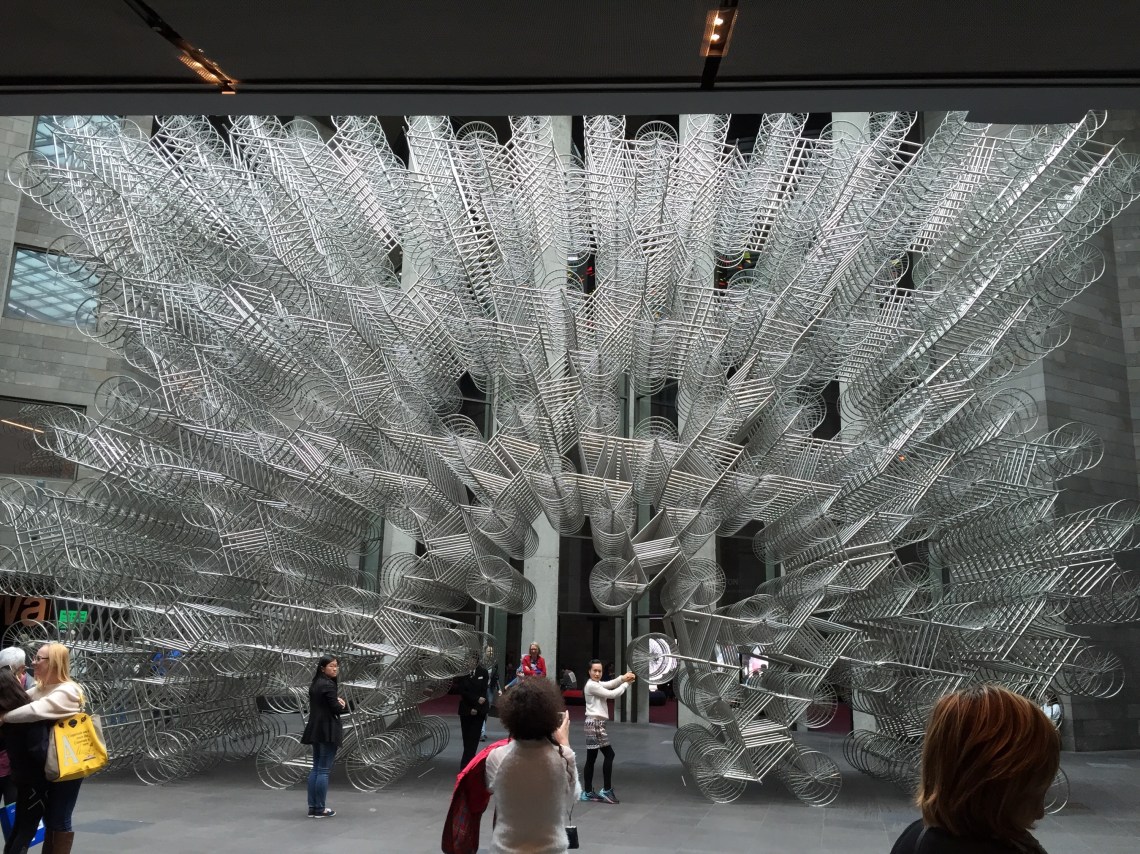 The exhibition consisted of a wide range of artworks from paintings, drawings, sculptures, installations, photography, multimedia works and printings. When I entered NGV, the large installation Forever Bycycles (2015) welcomed me.