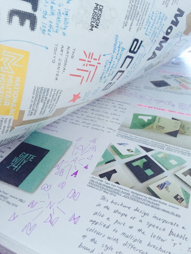 As I love visiting galleries and learn about arts (that’s why I don’t usually go to galleries with my siblings… they will need to wait hours for me until I come out of exhibitions!), it is a fun process to design the actual gallery that makes people want to go and engage in. Reflecting the concept of ‘the gallery for young emerging artists and conceptual, modern art’ on architectural design and brand identity is not difficult, however explaining why and how the designs make you feel or think through the use of design elements and principles is sometimes challenging. Although I am not currently taking Psychology as a vce subject, I find interesting to connect how visual communication tells more than what is in front of us; individuals associate components of the design with their personal experiences and what they have seen them in their lives in the past.