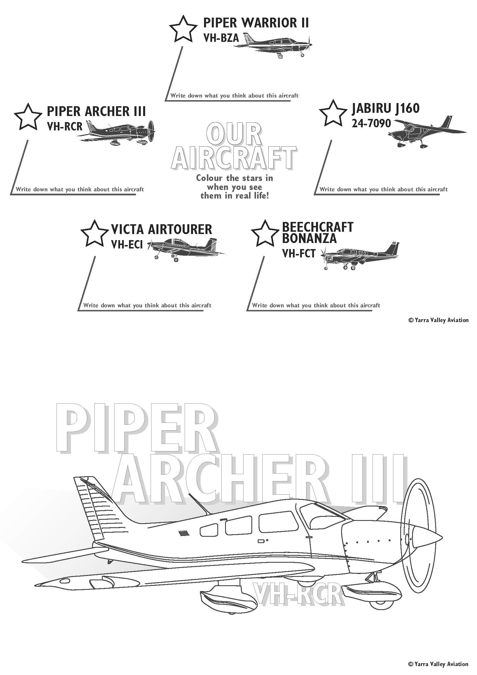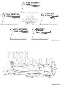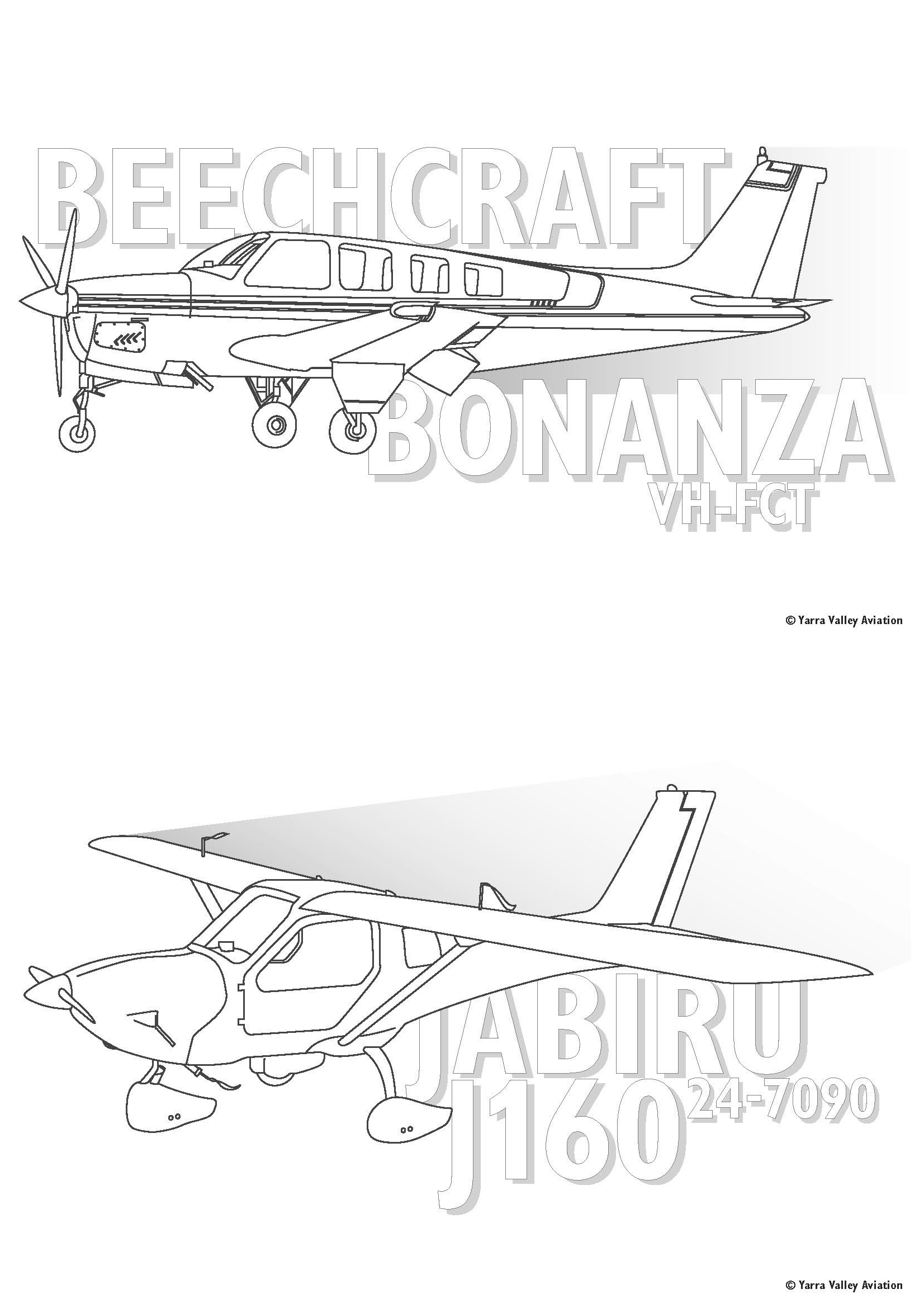 I’ve been working on the design work commissioned by Yarra Valley Aviation. The first brief was to redesign a colour-in booklet featuring five aircraft used for the flying school (namely Victa Airtourer VH-ECI, Beechcraft Bonanza VH_FCT, Jabiru J160 24-7090, Piper Warrior II VH-BZA and Piper Archer III VH_RCR). The pre-existing design had a mix of hand-drawn illustrations and digital drawings, which gave an inconsistent look. The client was after the professional look as well as the level of clarity to the figures of the aircraft.