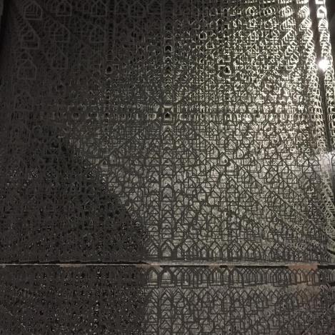 Regarding the spatial progression through the exhibition, I enjoyed the compression and the expansion of the space by ceiling heights, emphasising the change of theme and the subject matters Escher had gone through. Furthermore, the structures that invite visitors to experience are playful and almost like a part of a theme park where you would take pictures as a memory of the visit. For example, the grid of transforming houses in the open, spacious room is not only an ideal place for visitors to take photogenic images for social media, but also giving freedom to how they would walk around and appreciate Escher’s artworks scattered about in the space. Visitors can walk the corridor-like strips, or through the gable house tunnels, suggesting a new way of seeing artworks in the gallery space where conventionally people would walk alongside the walls.