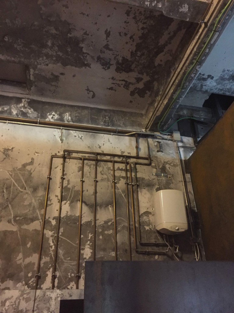 The design of bathroom area kept the same grungy atmosphere though the selection of materials and the lighting. Afterall, the toilet space is still a part of the building that has capacity to tell a story.