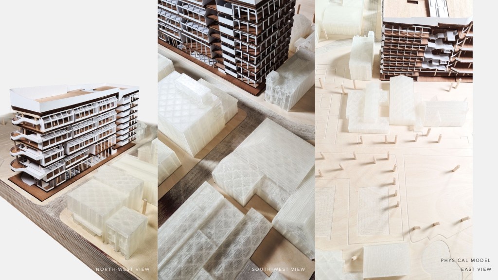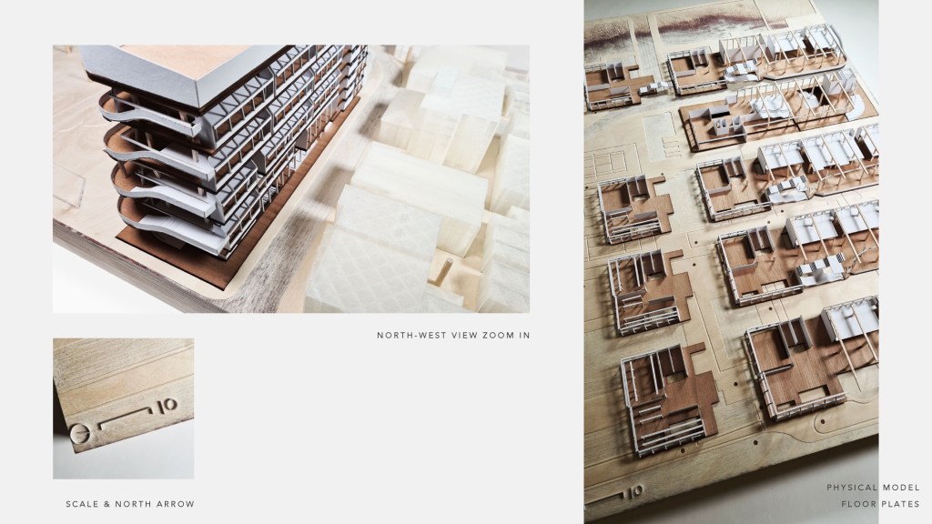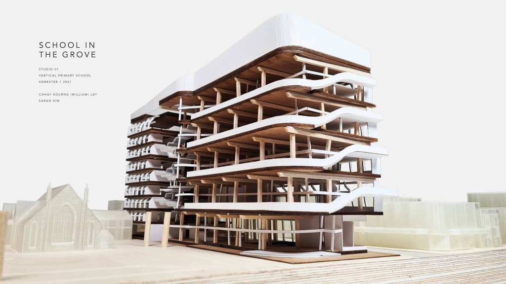 Through this project, we were interested in engineered timber, and therefore it made sense to fully express the structure as part of the architectural representation. Some of the feedback I received from my mentors include the next step – provision and integration of services, potentially including water harvesting, photovoltaic panels, efficient air conditioning system, proper fire stairs, etc., as well as responding to the prevailing winds and wind-driven rain. Of course it’s almost impossible to perfect the design in three months, but understanding what to consider and how to make all work together is definitely a skill that myself as a student need to develop through my degree. Also, understanding and actually applying them to the design are two separate things, so it’s a long way to get to the level I’d like to be.