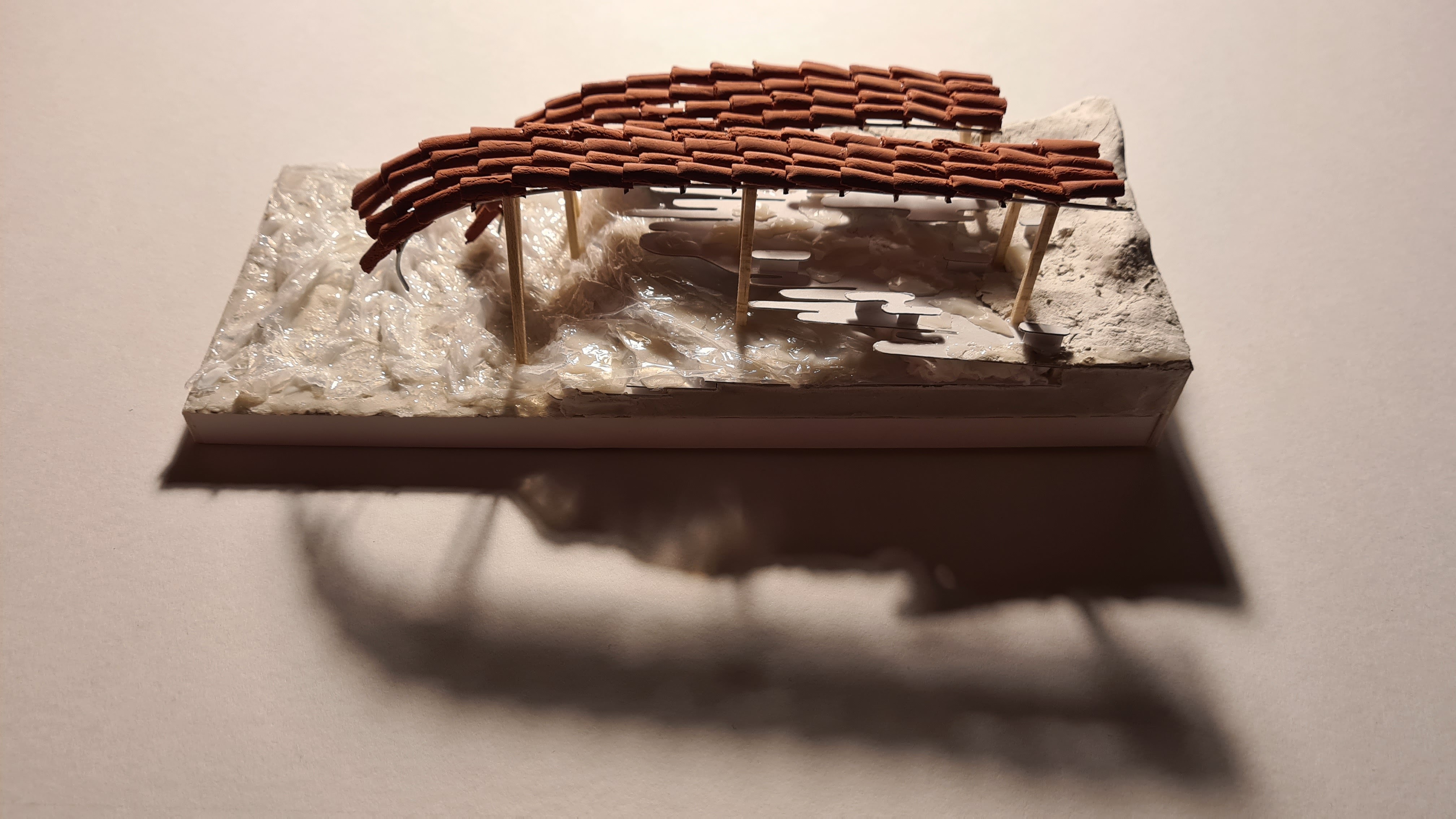 Model making is one of my enjoyment. Since I had a little amount of time for making a model, photographing and polishing the images for presentation (Sunday all day & after work on Monday night), it was a bit more hectic than I had hoped… Many trials and errors for finding the right materials (there were a few “yeah nah” moments) while forgetting to eat.