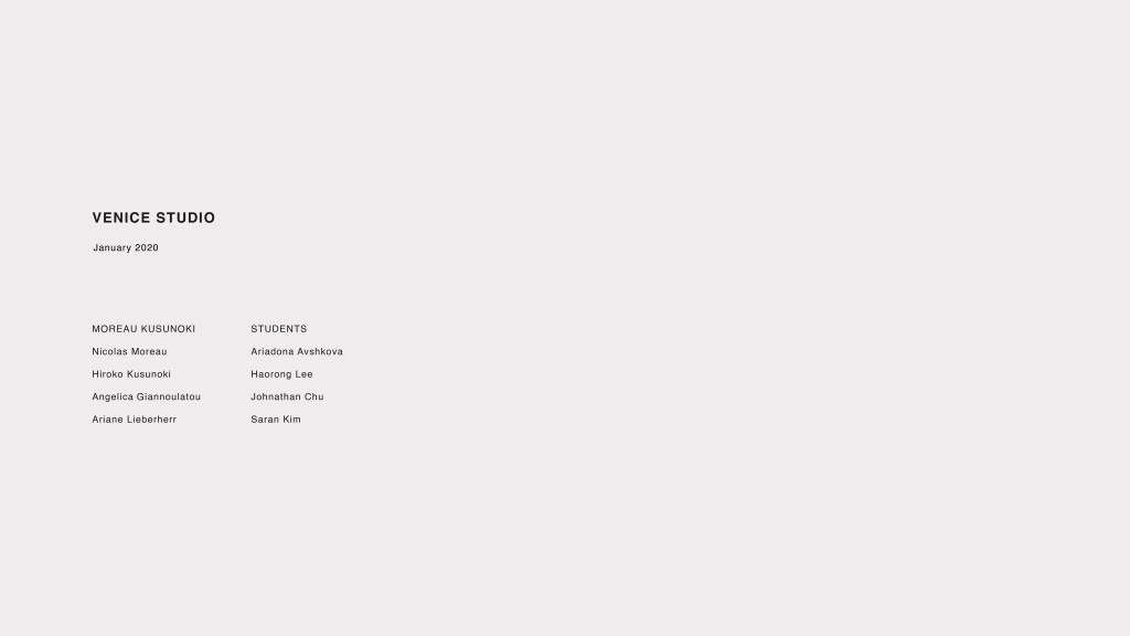 In early January, I was fortunate to be offered a spot in the intensive studio program called Venice Studio. Venice Studio consisted of a series of design studios led by 19 architecture firms, and I got into the one run by Paris-based firm Moreau Kusunoki.