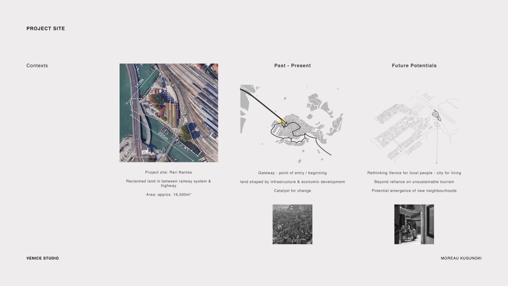The future speculation led us to believe that one way to combat the issues is to make the site another “catalyst for change” – to be the place for local people to gather and eventually to establish neighbourhoods in the nearby piers and industrial area over time (just like piers in Amsterdam). Since the formation of the site WAS the catalyst for change – a product of economic development and infrastructure, leading Venice to become a mecca for tourists – we felt that it can be a place that empowers local people in the future.
