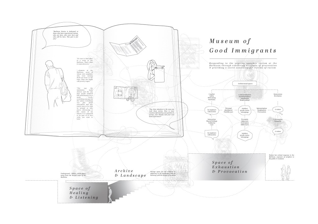 It was clear from the beginning of the semester that it was going to be a challenging one for everyone. The programme (semester schedule) provided outlined pretty much every single deliverable for each class (twice a week) – almost every class had yellow highlighted notes saying “Pin-up” or “Presentation” or “Submit”. Each assignment was introduced in the class accompanied by an outline with requirements, key dates and references, everything was clarified from the beginning. It was quite overwhelming at the beginning, especially when it came to attention that we were going to work on three assignments (site context drawings, site model and the presentation on the curatorial research and direction for museology) simultaneously in three weeks. However, being aware of expectations for weeks to come helped me pace my mental and physical resources, making sure that I have enough energy to produce expected deliverables for each class. Of course, there were lots of ups and downs – working on deliverables on Sundays on campus with classmates, or until late at night after 12am – but at least we knew what had to be done and it was possible to achieve. This degree of transparency and the provision of relevant references is something I had never experienced at the master’s studio level, and I very much appreciated the clarity of tasks and engagement with the theoretical framework.