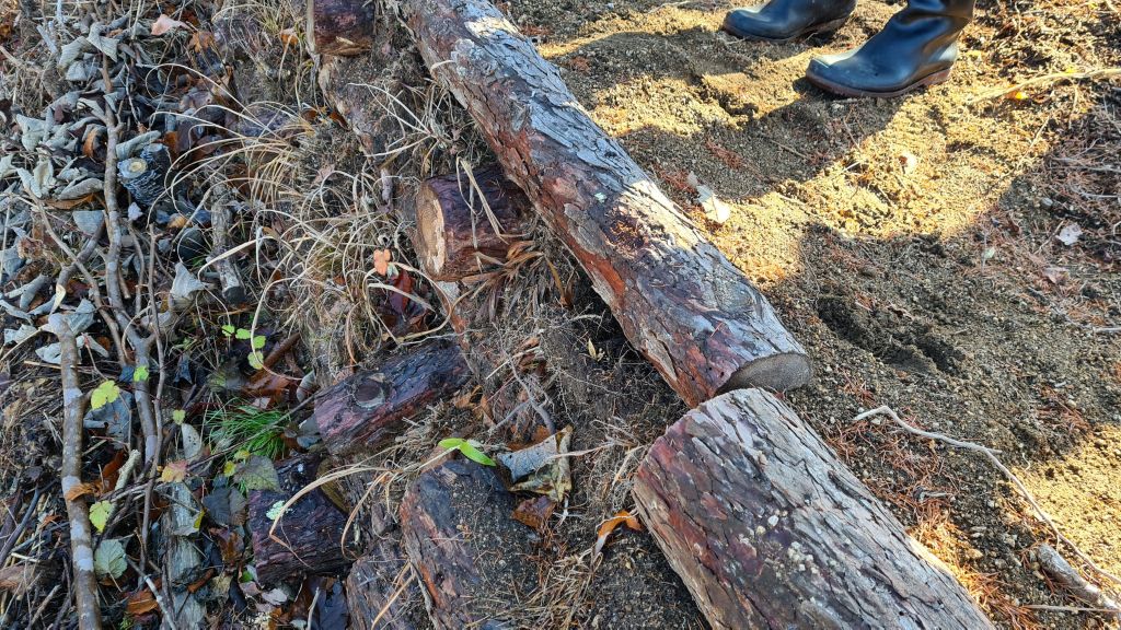 At Queen’s Meadow Country House (QMCH), we worked on building a terrace together, involving: the cutting of trees, relocating young bamboo (seedling high) in root blocks, constructing a log structure, capping the gaps of the structure using bamboo root blocks, and filling and compacting the soil. Working on the terrace construction with Tase san was an eye-opening experience, both in terms of the process and attitude. I was particularly amazed that nothing was wasted. Tree branches were used to create a bird nest-like structure on the side, and young bamboo seedlings (with roots) were repurposed as part of the retaining wall, stabilising the soil. The terrace was constructed using materials available on the site, and the construction process utilised manual labour (no machines). Tase san repeatedly mentioned, “there is no need to rush” whenever participants (including myself) were trying to complete tasks quicker. The steady pace and celebrating the progress itself (rather than against a benchmark or goal) created a palpable sense of satisfaction and contentment among participants.