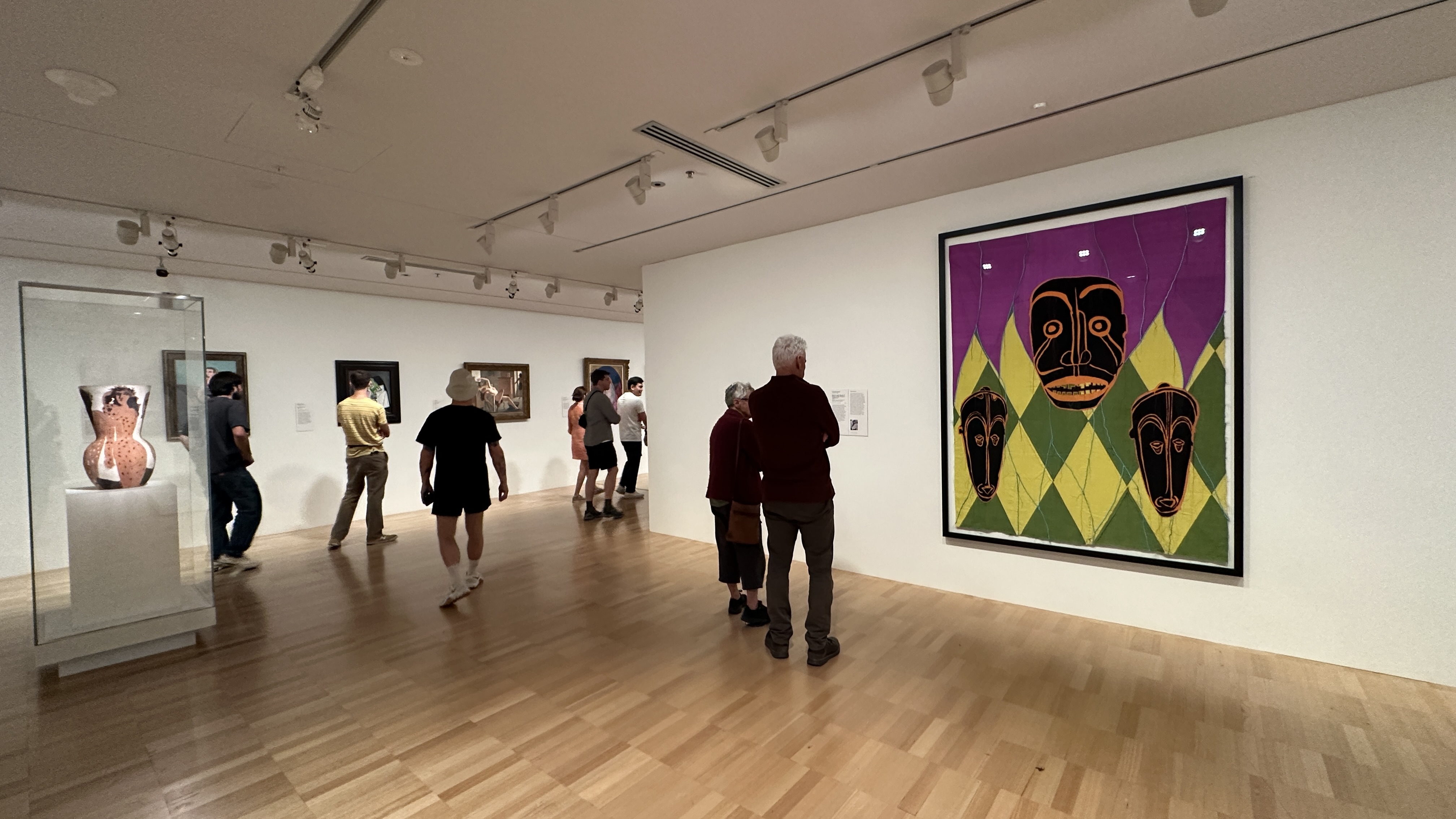As I entered the second room in the Late 19th & early 20th Century Paintings & Decorative Arts Gallery on Level 2, I realised the wall facing the entry into this room celebrated Shonibare’s large-scale quilt work, where Picasso’s Weeping Woman had been located before the Triennial. Learning that Shonibare explicitly references Picasso’s work and his collection of African artefacts made me ponder if the display of Shonibare’s work, being open to appropriating European ethnic art, in this location deliberately suggested the connection with Picasso and his appropriation of African art.