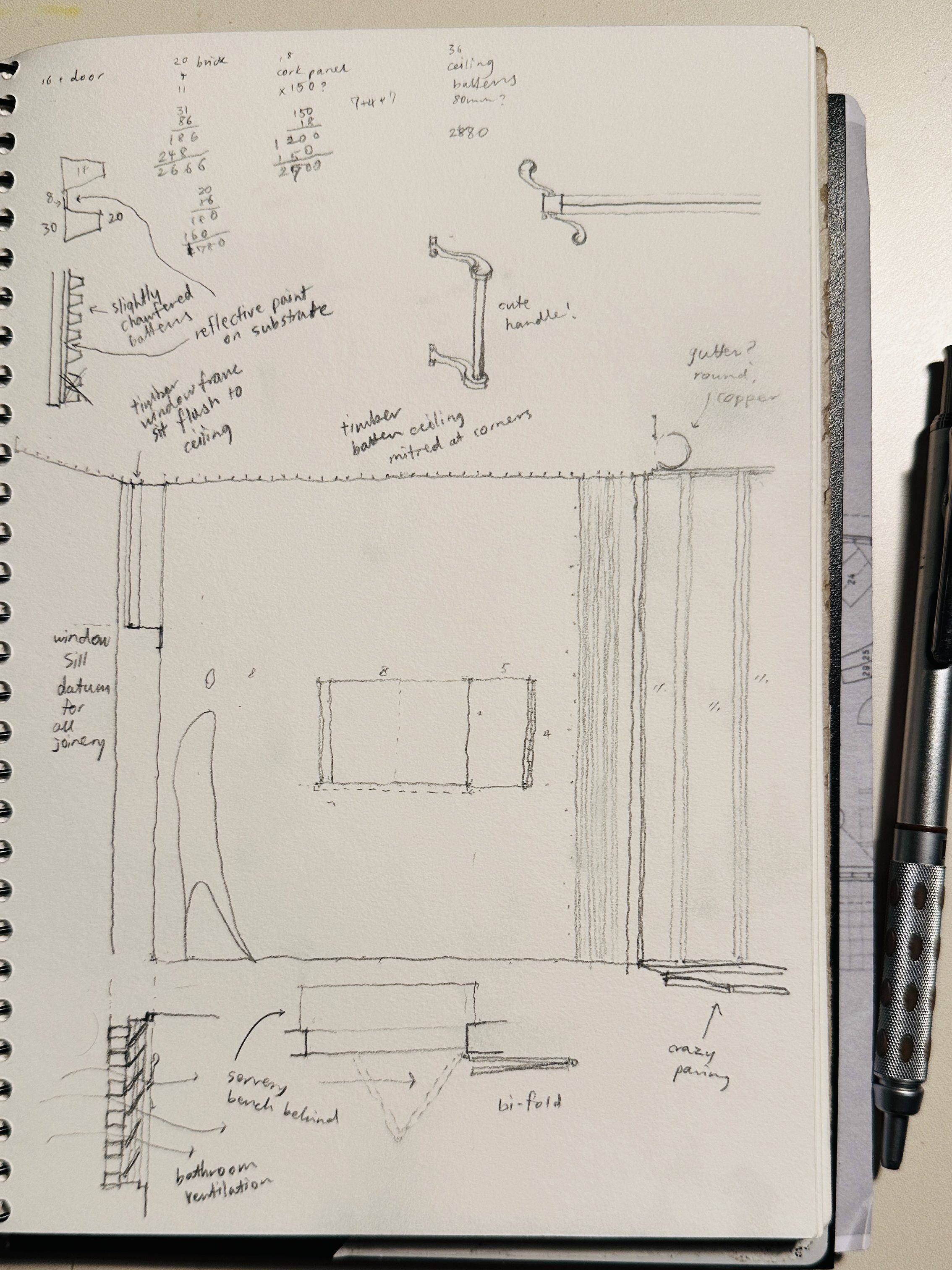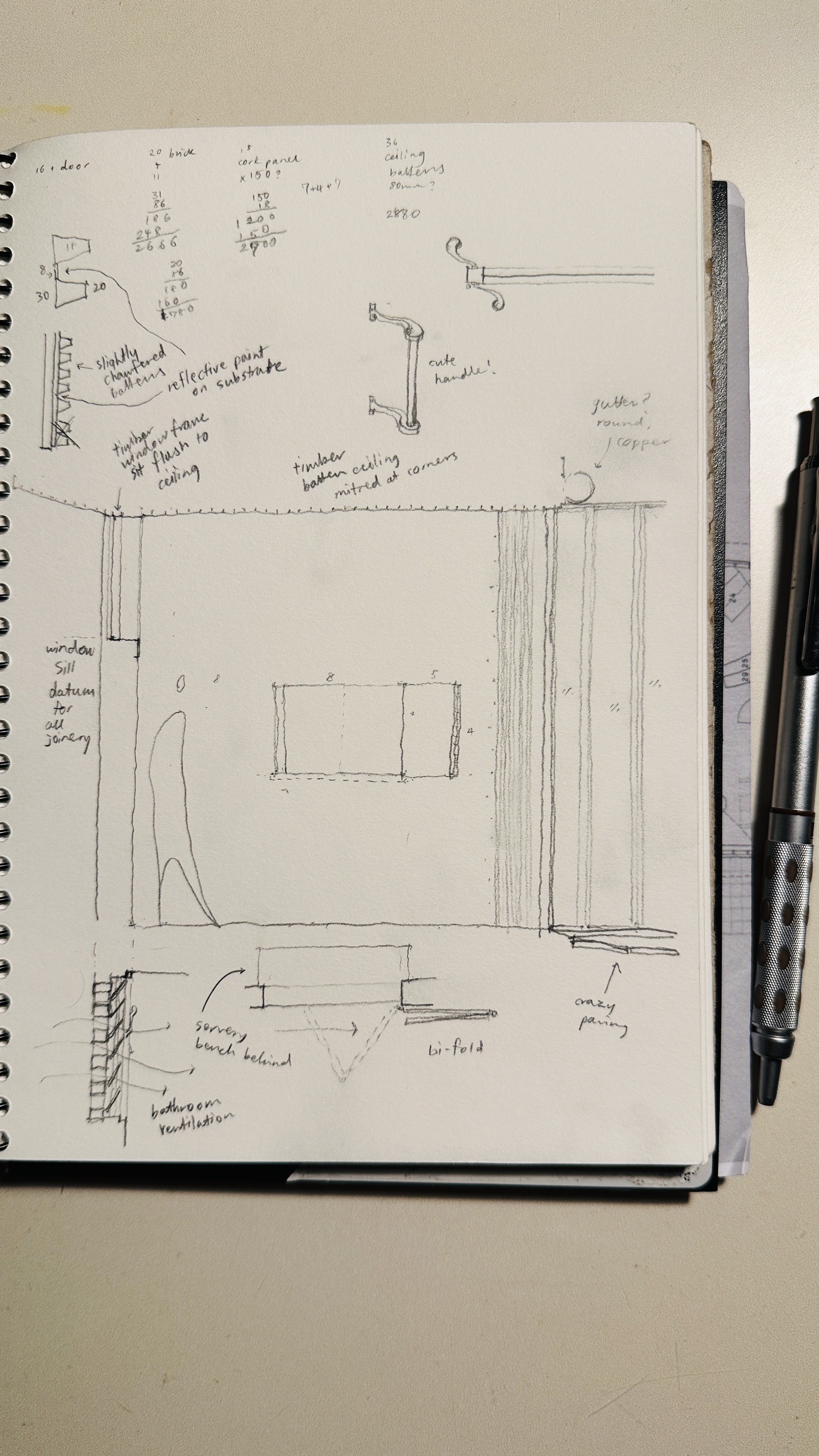 The above-mentioned timber soffit panels are orthogonally organised to follow external walls, with chamfering at four corners. As I checked the basement, it became apparent that the concrete slab timber formwork was set out to match the layout of the timber soffit panels. I imagined how important the consistent architectural language for those two horizontal planes might have been.