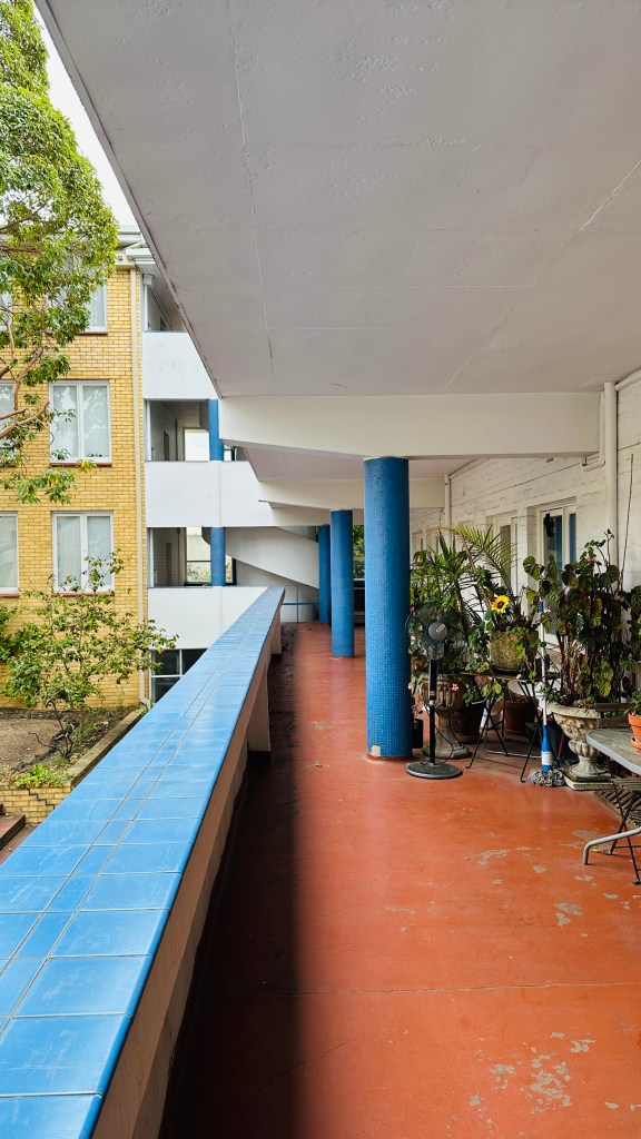 Lastly, the visit to the Clendon Corner flats revealed evidence of more extensive alterations and the need for different types of maintenance for the 75-year-old complex. Compared with the original plan, an entry staircase was removed, additional structural members were added to the upper-level verandah, and internal refurbishment removed many traces of Grounds’ design. It made me think about the amount of energy that goes into restoring and retaining the original design intent. As Tony Lee mentioned at Moonbria, living in one of the Grounds’ houses or flats is like being a custodian of the iconic design.