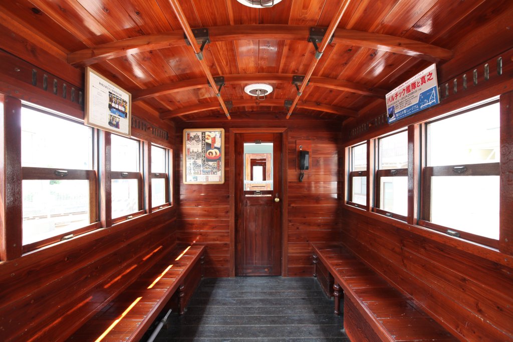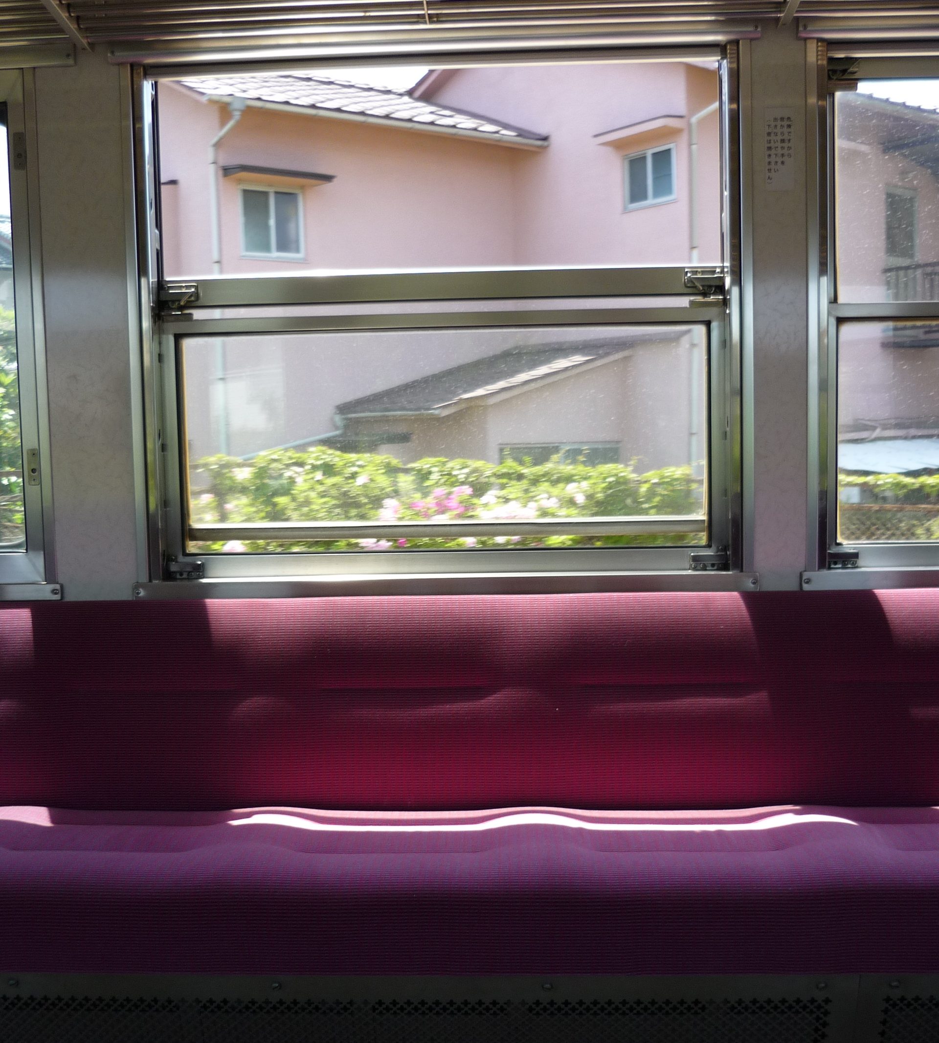 One of the most memorable experiences on a train has been Botchan ressha in my hometown, Matsuyama, Japan, named after the main character who gets on this train in Soseki Natsume’s novel Botchan. Originally a steam locomotive, the Botchan ressha now runs between Matsuyama station and Dogo with a diesel engine, while maintaining the atmosphere of the Meiji period. The interior design of the existing carriage continues to feature the original lacquered timber lining, with narrow timber bench seating on two sides. The interior is relatively dark, and the ceiling is low, but the timber’s gloss finish captures natural light, illuminating the carriage. The seats are not ‘comfortable’ by today’s standards (and it’s definitely not a commuter train), but they let you feel the wheels turning and the bumps along the way. People tend to sit on the benches but twist their bodies to look out the window behind. It has an unusual atmospheric quality, where everyone seems sensorily immersed: the touch of the hard timber bench, the sounds of the carriage and train moving, and the feeling of the breeze coming in through single-hung timber-framed windows. The interior design of the Botchan ressha is effortless and modest, yet the experience it offers is unforgettable.